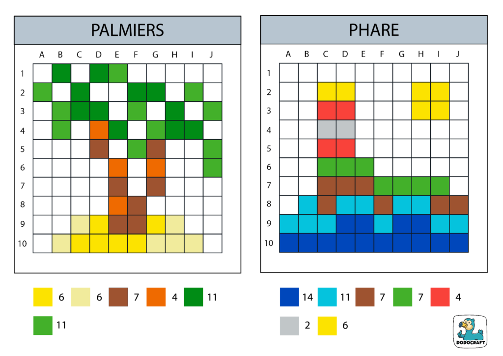 Pixel Art 10×10 Palmiers Phare