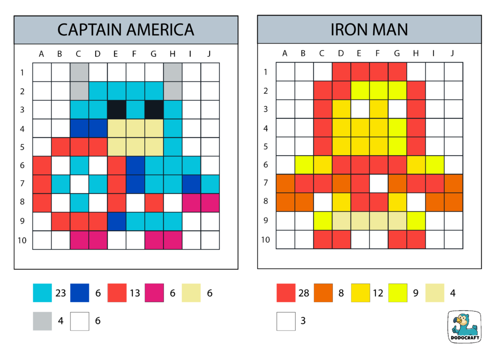 Pixel Art Super Hero 10×10 Captain America Ironman
