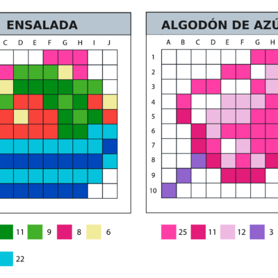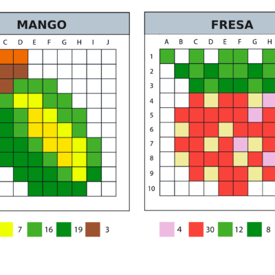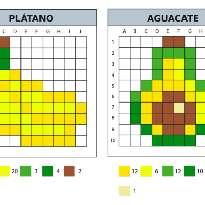 8 modèles de pixel art 10×10 sur le thème de la norriture et des aliments.