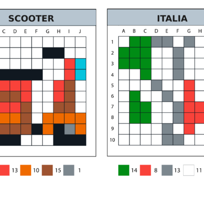 6 modèles por réaliser des reproductions sur le thème de l’Italia en pixel art. Descargar modelos 10×10Rejillas vacias MINI (10X10) ITALIA ITALIA 1 8 colores Medio MINI (10X10) ITALIA ITALIA 2 11 colores Medio MINI (10X10) ITALIA ITALIA 3 13 colores Medio