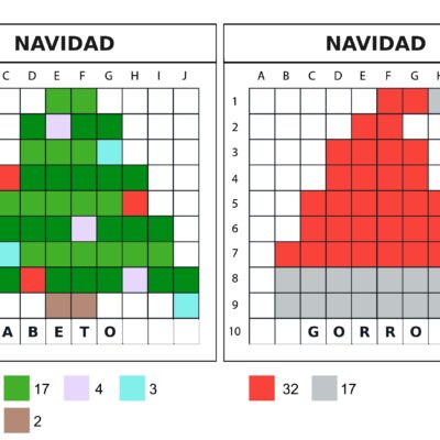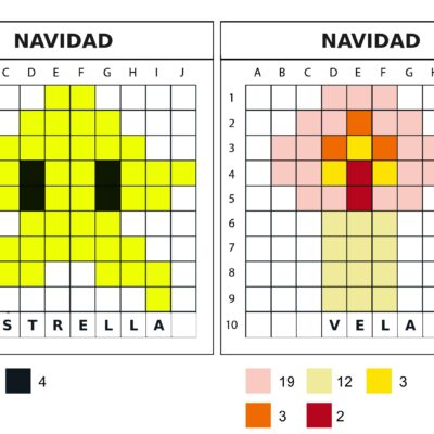 8 modèles de pixel art 10×10 sur le thème de noël : traineau, bonhomme de pain d’épice, sapin, rennes, bottes de noël