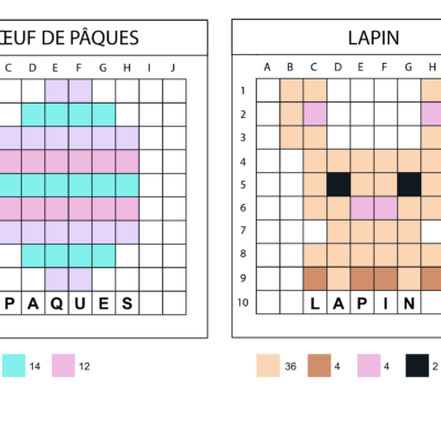 4 modelos de pixel art 10×10 para realizar con los nuevos colores de píxeles sobre el tema de Pascua.
